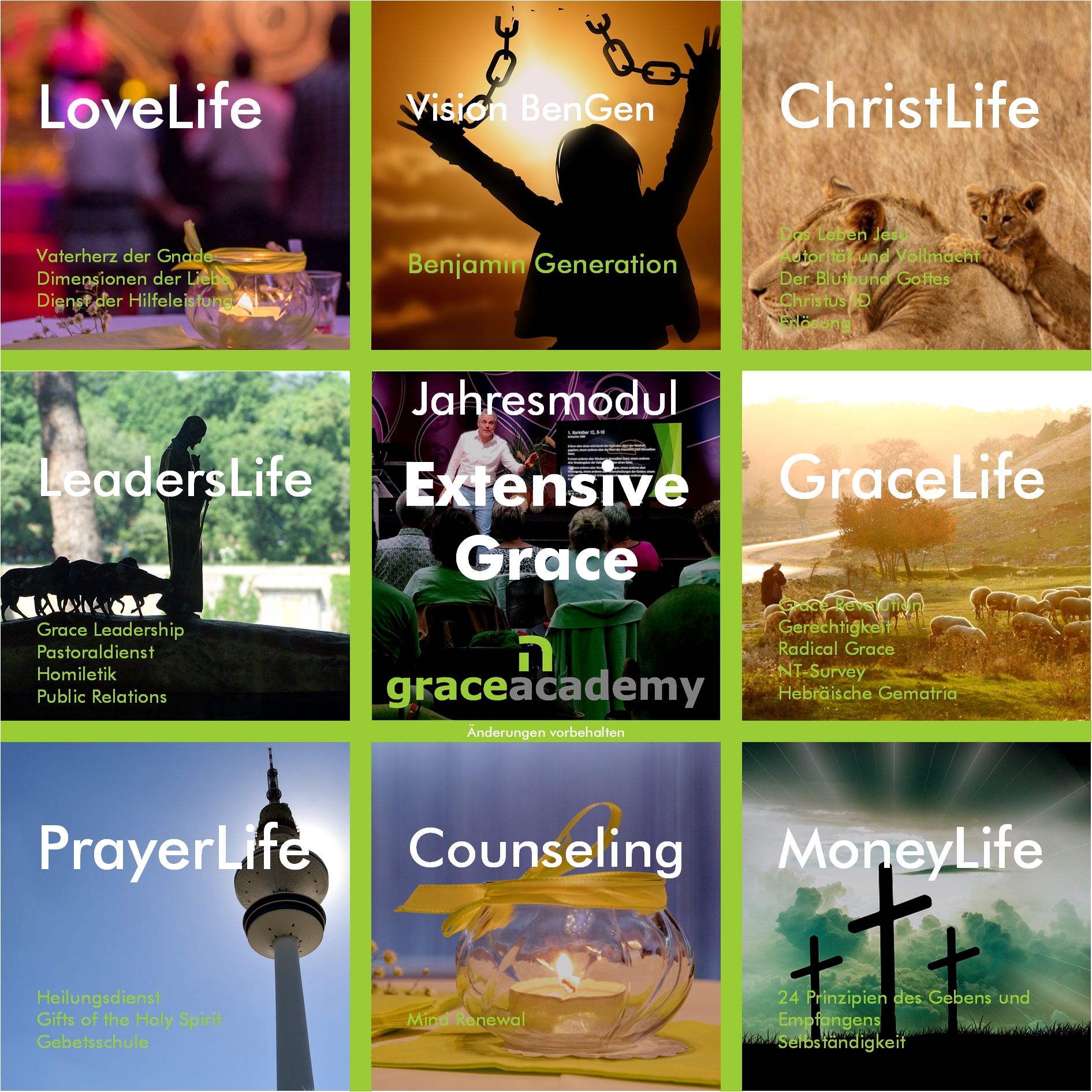 Der Lehrgang Extensive Grace ist in 7 Kursblöcke mit insgesamt 27 einzelnen Kursen aufgeteilt